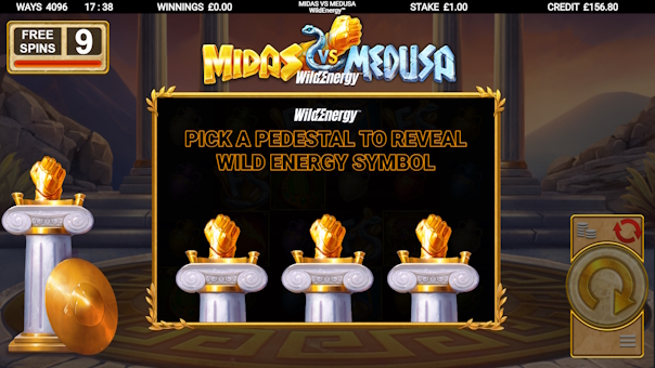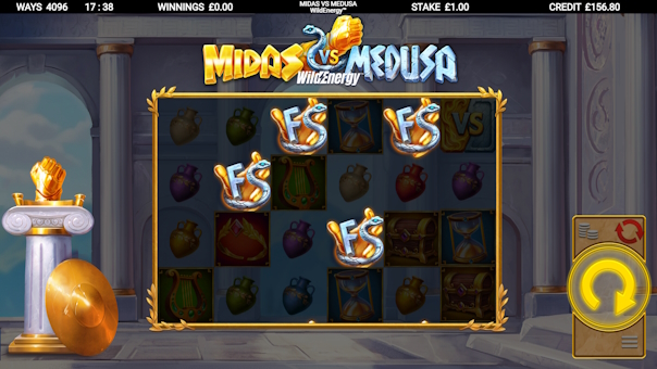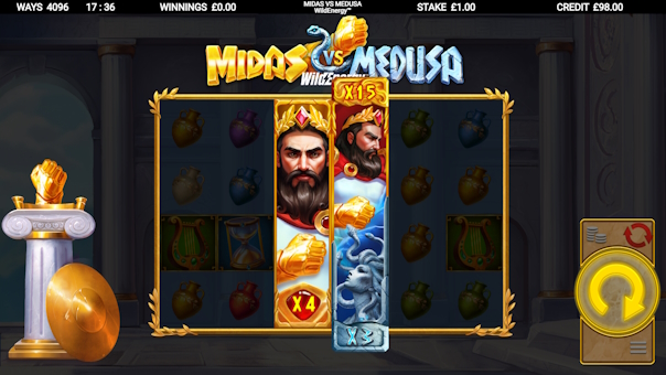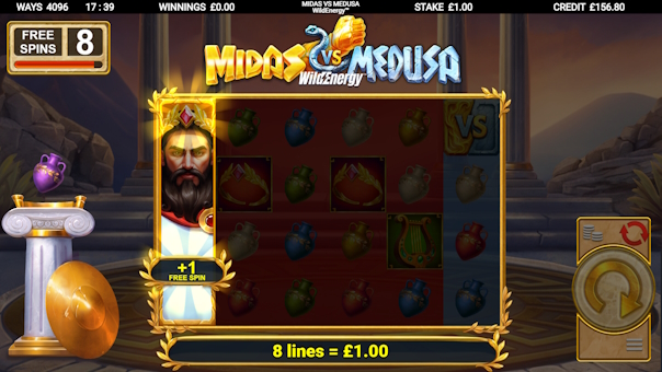 Midas VS Medusa WildEnergy throws you into an epic clash of legends — Gold versus Stone, Midas versus Medusa — in the heart of the King's throne room.