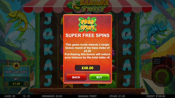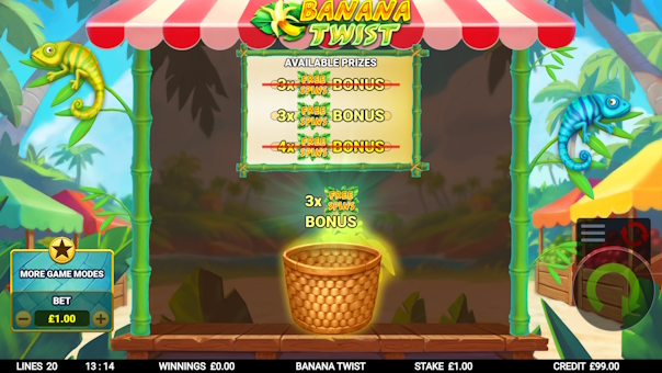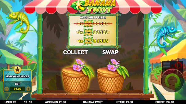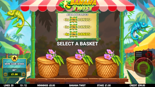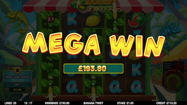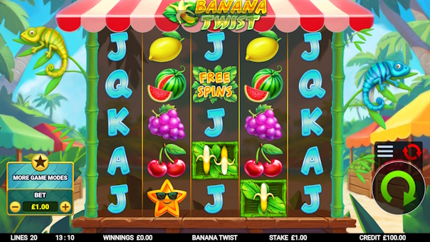 Banana Twist delivers a vibrant, high-energy slot experience on a unique 5x5 reel layout with 2 lines. Banana symbols act as wild multipliers that twist up or down the reels, boosting your win multiplier with every twist. Land 3 or more scatters to unlock free spins packed with even more twisting banana action. Hit the 4-of-a-kind feature to stick those valuable twisting bananas in place for bigger potential rewards. Enjoy a free bonus upgrade for a chance to enhance your 3-scatter bonus into the higher-paying 4-scatter feature. Plus, explore 5 exciting game modes, including bonus chasers, buying banana twists, and direct bonus purchases.