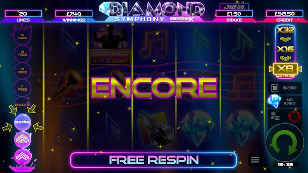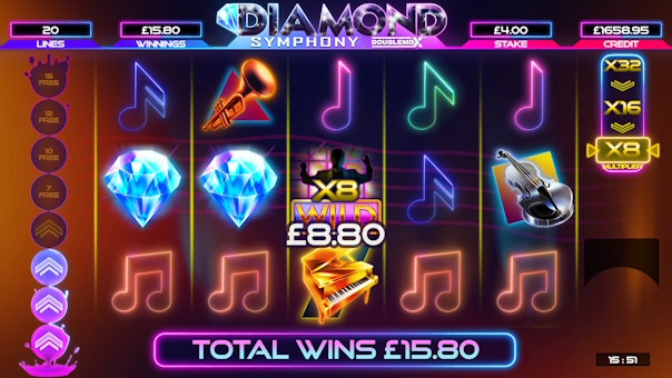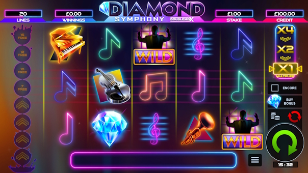 Diamond Symphony DoubleMax is a 5 x 3 Video Slot with 20 fixed Paylines, the revolutionary DoubleMax mechanic and an exciting free spins feature.