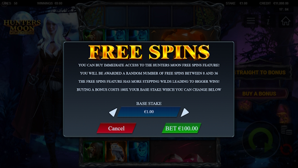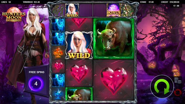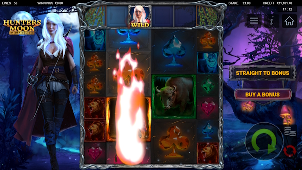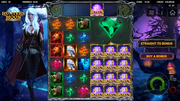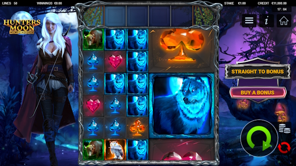 Hunters Moon is a 6x6 Gigablox video slots machine with 50 fixed paylines. Featuring symbol blox sizes from 1x1 up to a huge 6x6 allowing for massive wins.