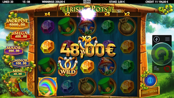 Step into the lush, green lands of luck with this exciting 5x4 video slot, featuring 20 paylines and the thrilling MultiMax™ mechanic. Collect Lucky Coins to trigger the Coin Spinning feature and win big. Each spin brings a chance for the coveted Free Spins feature with up to X3125 multipliers and watch the reels come alive. With enhanced chances of landing coins and pots during Free Spins, the luck of the Irish is truly on your side. Spin today and chase your fortune in Irish Pots 'MultiMax'!