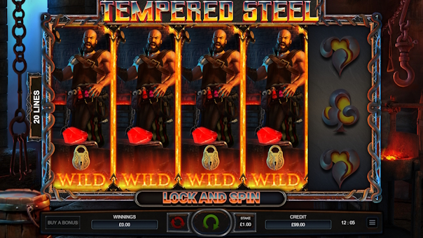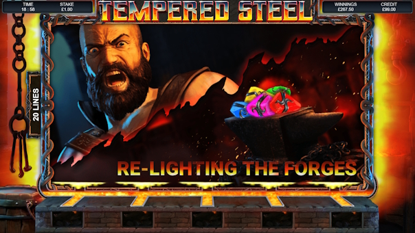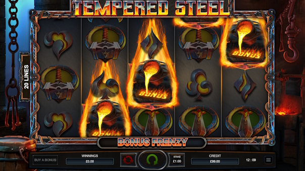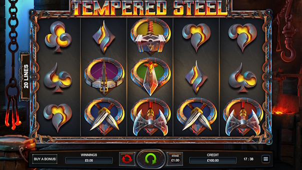 Tempered Steel is a 5 x 3, 20 line game with high volatility and has a Free Spins bonus as well as 3 base game reel bonuses.