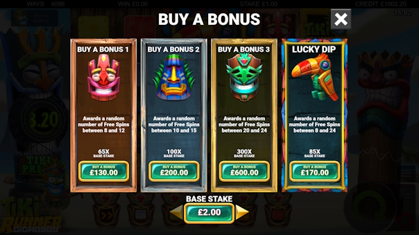 Introducing Tiki Runner GigaBlox - The Ultimate 6x4 Slot Adventure with 4096 Ways to Win! Join your old pal Tiki on an epic journey to riches in our latest extravaganza. Run the trail removing lower-value symbols from your reels, leaving you with only the high-paying ones, increasing your chances of a big win!